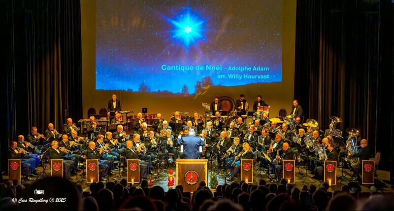 Het theater is, op enkele stoelen na, zo goed als uitverkocht. Rond 13.55 uur betreden links en rechts de orkestleden door de zaal het podium. De dirigent, Kapitein der Genie titulair b.d. Jos Jansen wordt met een heel warm applaus begroet en zet meteen de openingsfanfare “Fanfare and Flourishes” in, gevolgd door het Wilhelmus. Afwisselend presenteerden bestuurslid, kapitein Sjors Maas en Jos Jansen de muziekwerken. Bij “Mary’s Boy Child” vraagt de dirigent bugelist Pieter Boer om even te gaan staan en vertelt dat dit prachtige arrangement door Pieter is gemaakt. Een welverdiend en luid applaus viel Pieter ten deel. Het concert wordt voortgezet met een zeer afwisselend programma, waarbij ook onze tamboers het publiek imponeren met hun mooie technieken in… de “Battle of Engineers”. Voorafgaand aan dit tamboerwerk, geeft tamboer-maître, tweede dirigent 1ste luitenant der Genie titulair b.d. Corné Pas uitleg aan het publiek hoe hij tot dit muziekwerk is gekomen. Het Amerikaanse Rudimental system neemt het op tegen het Zwitserse Basler Trommer system en dan ontstaat er een ware drum-battle. De optredens van het tamboerkorps doorspekt heel prachtig de orkestwerken. Het laatste muziekwerk voor de pauze is de “Glenn Miller Parade”. Na de pauze begint het tweede deel van het concert, waarin de muziek steeds luchtiger en feestelijk wordt. Waarbij de dirigent regelmatig applaus vraagt voor de solisten. Het VFKG is officieel een onderdeel van het Regiment Genietroepen en zorgt voor nog meer zichtbaarheid naar buiten toe. Langzaam werken we toe naar het officiële gedeelte met de Genietradities. We spelen onze Regimentsmars en zongen we gezamenlijk het Mineurslied. Aansluitend gaan de Brandewijntjes in de eregalerij soepel achterover. Na het Regimentslied treden negen leden uit het orkest als mannenkoor naar voren. Samen met het orkest, de tamboers en het koor wordt "De Kracht van de Genie” uitgevoerd, dat door het publiek zeer wordt gewaardeerd. Vervolgens wordt medley “Songs of the Wiz” gespeelt in een arrangement van Peter Kleine Schaars. Deze medley groeit uit tot een waar muzikaal feestje, waarbij het podium zich opnieuw vult met Marketentsters en tamboers en het publiek luid geklapt dit feestje met ons mee vierden. Na afloop van deze medley vroeg Jos op een ware André Rieu-wijze: “Nog eentje, NOG EENTJE?” Het publiek reageerde enthousiast met een luid “Jaaah!”. De dirigent draait zich om, telde af en knallen we de extra scherpe “Polka Diavolo” op een hoog tempo als toegift de zaal in. De stemming is nu echt uitbundig en krijgen we van het publiek een daverend staand slotapplaus. We kunnen terugkijken op een zeer geslaagd korpsconcert!