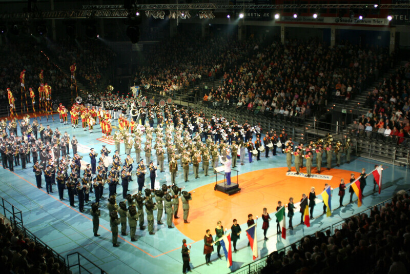 Je ervaar hier de sterren van de internationale militaire en blaasmuziek. Meer dan 400 muzikanten uit zeven landen presenteren hun enorme repertoire van de populairste marsen, de mooiste melodieën en evergreens met een vleugje klassiek, folklore en moderne entertainmentmuziek. Kijk uit naar boeiende choreografieën, adembenemende uniformen en kostuums, een vuurwerk van muziek en licht - een indrukwekkende show die ook u met trommels en trompetten zal betoveren.