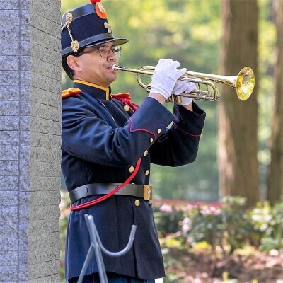 Tijdens deze Wapendag herdenking speelde Bryan Verel het Taptoesignaal Infanterie en na 2 minuten stilte volgde het signaal “Voorwaarts”.