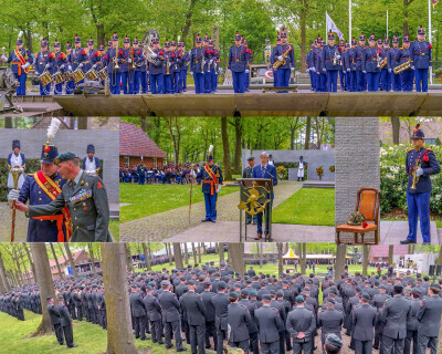 Maandag 15 mei vond de Wapendag Regiment Genietroepen 2023 plaats op de Van Brederodekazerne te Vught. Traditioneel verzorgt het VFKG jaarlijks de muzikale omlijsting van het officiële ceremoniële(ochtend)gedeelte. Dit jaar stond de Wapendag uiteraard in het teken van het 275 jaar bestaan van het Regiment Genietroepen. “Vieren en herdenken”. Op deze dag worden ontvallen Genisten piëteitsvol herdacht en viert het Regiment verschillende heuglijke feiten. Onze trompettist Bryan Verel blies ter inleiding van de minuut stilte het “signaal taptoe Infanterie” en na dit indrukwekkende stiltemoment het signaal “Voorwaarts” en vond aansluitend de kranslegging plaats. Tijdens de kransleggingen speelde het VFKG het indrukkende “Brothers in Arms”. Dit jaar was het voor het VFKG een wel heel bijzondere Wapendag. We mochten uit handen van generaal-majoor der Genie b.d. Koos de Vos via onze tamboer-maître eerste luitenant tit. b.d. Corné Pas een nieuwe “mace” (tambour-maîtrestok) in ontvangst nemen. Op de kop van de nieuwe mace staat te lezen: Regiment Genietroepen 1748 en de krijgsverrichtingen van het Regiment. Na de overhandiging van de nieuwe mace werd het fanfarekorps door de Regimentscommandant, kolonel der Genie Bas van den Berg in het zonnetje gezet en door hem lovende woorden gesproken. Na de toespraak van de RC werd ook door generaal-majoor der Genie b.d. Koos de Vos eveneens een mooie toespraak gehouden. Het VFKG ontving een luid applaus van alle aanwezigen. We zijn zeer trots en vereerd. Sodeju!