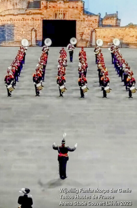 Op zaterdag 2 september 2023 is het VFKG afgereisd naar Liévin voor de Tattoo Hauts de France in de Arena Stade Couvert te Liévin en op zondag 3 september een korte streetparade door het centrum van Souchez. De festiviteiten stonden in het teken van het einde van de "Great War" (1e wereld oorlog) 1914 - 1918. Onze show in de arena is door het publiek zeer goed ontvangen en reageerde men enorm enthousiast en klapte iedereen vrolijk mee. Dat het publiek ons optreden mooi vond bleek ook uit het daverende slotaplaus. Na de taptoe en omkleden in burger maakten we het onder elkaar nog gezellig tijdens een heerlijke zomeravond. Na een overnachting in het naastgelegen hotel, stond er in het restaurant van de arena een ontbijtbuffet klaar. Na het ontbijt vertrokken we gekleed in zomertenue met de bus naar het centrum van Souchez voor een korte streetparade. We marcheerden op met de mars 'Colonel Bogey'. Voor de eretribune hielden we halt en zette onze TM Corné ons linksom. Hier speelden wij voor de VIP's de regimentsmars met het 'Mineurslied'. Dit werd door het aanwezige publiek en de VIP's hooglijk gewaardeerd. Na het Mineurslied vervolgden we de route met de mars 'Sons of the Brave' en sloten we met deze mars de streetparade af. We mogen terugkijken op twee geslaagde optredens in Frankrijk. Sodeju!
