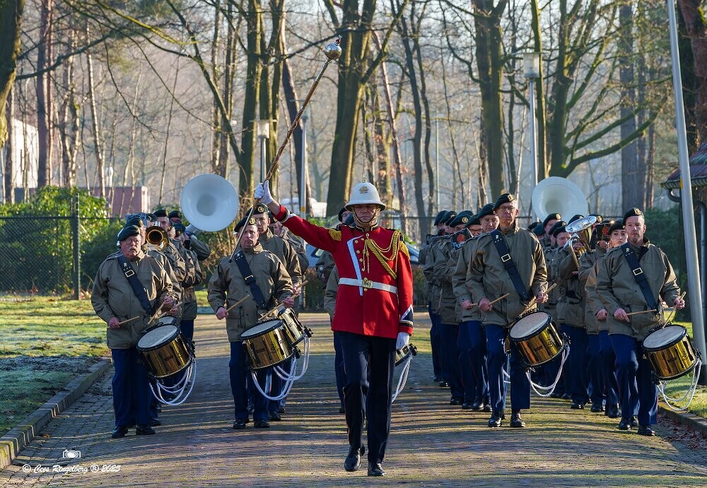 Zaterdag 1 februari 2025 heeft het VFKG, gekleed in wintertenue, medewerking verleend aan de examens voor de basis tamboer-maître opleiding van het KNMO.