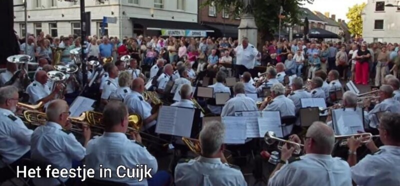 Twee volle dagen vierdaagse achter de rug! We zijn donderdagochtend gestart in Groesbeek met een concert voor de langskomende wandelaars. Onze muziek werd erg gewaardeerd door het publiek en ook de interactie van Jos met het publiek en het vocale gedeelte van de ‘Böhmischer Traum’ bracht een heel vrolijke sfeer teweeg. Daarna de proefsluiting van de Genie pontonbrug over de Maas bij Cuijk en aansluitend een openlucht concert gegeven in het centrum van Cuijk voor het theater. Uiteraard sloeg ook hier de “Böhmischer Traum” met onze vocale inbreng in als een bom en was er een super uitgelaten en vrolijke stemming. Ook het “Ons moeder zeej nog zo” sloeg goed aan bij het publiek. De nummers met de zingende DJ Robert Pouwels met de “Engelbewaarder” en “Zij gelooft in mij” waren eveneens enorme kaskrakers! Op de Engelbewaarder werd flink polonaise gelopen Op vrijdag non stop marsen gespeeld bij het militair defileerpunt voor het gemeentehuis van Cuijk als muzikale boost voor de tienduizenden wandelaars voor het laatste stuk via de Genie pontonbrug naar de "Via Gladiola" in Nijmegen. Daarna ons afgemeld op de pontonbrug bij de Regimentscommandant met uiteraard het "Mineurslied" en een Brandewijntje. Daarmee was het voor ons einde oefening. Het waren gezellige, lange, maar vooral mooie muzikale dagen. We kunnen terugkijken op twee mooie muzikale dagen en hebben we veel punten gescoord bij de organisatie van de Vierdaagse en bij het Regiment. Nu gaat het korps een paar weken genieten van een welverdiende vakantie. “Sodeju!”